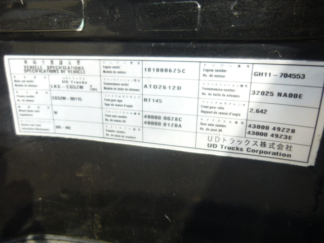 【2509-0025】 UD TRUCKS LKG-CG5ZM #CG5ZM-00115