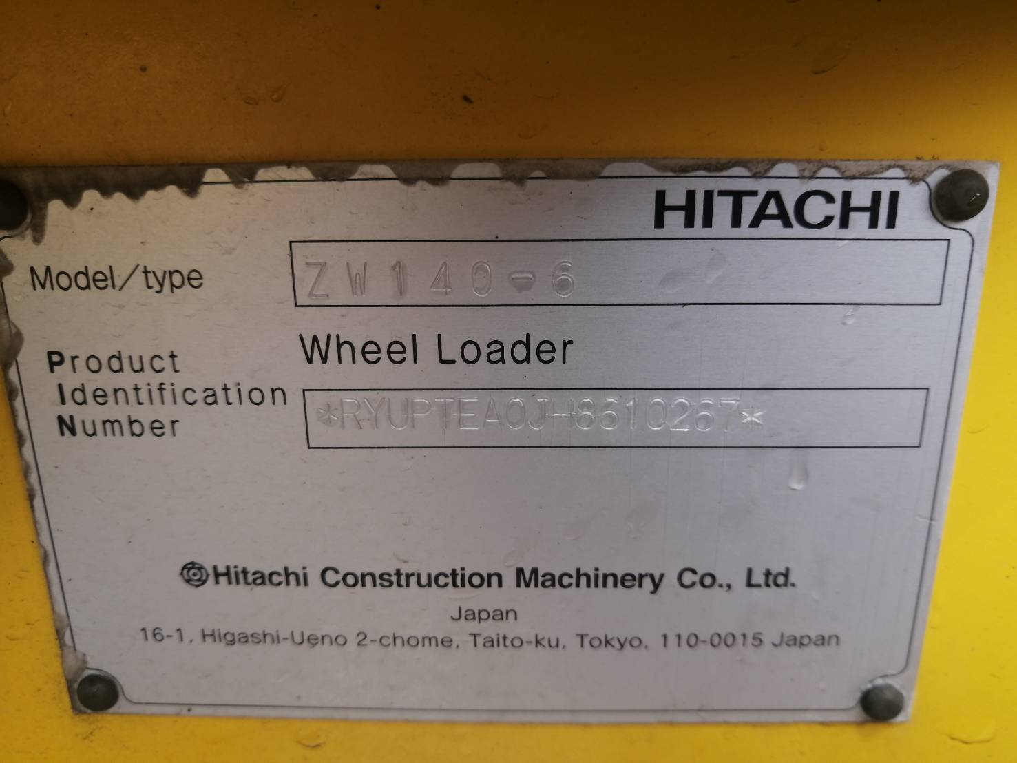 【2511-0024】 HITACHI ZW140-6 #H86-10267